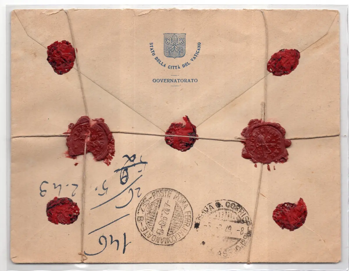 Luftpost Tobia Nr. 16/17 Serie auf versichertem Umschlag nach Rom am 4.2.49 - seitlich zweisprachiges Postetikett Deklarierter Wert - Schnur und Wachsstempel - sehr guter Erhaltungszustand - Selten - Kat. euro 1.6300 Cod. 916/16