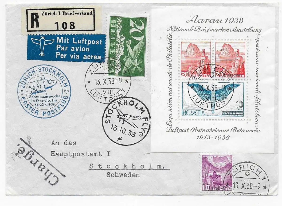 Luftpost Zürich-Stockholm, 1. Postflug 1938
