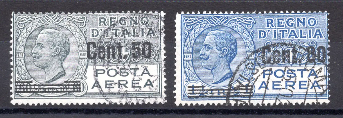 Aufdrucke, Luftpost Nr. 8/9 zwei gebrauchte Werte, posthume Stornierung Cod. 1228/OUTLET