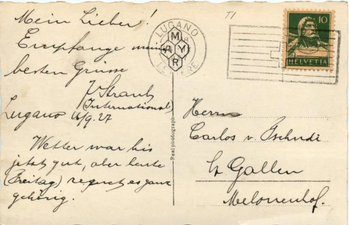 Danke. Alles Bestens. Können Sie mir allenfalls mitteilen, aus welchem Jahr die Postkarte stammt? Besten Dank.