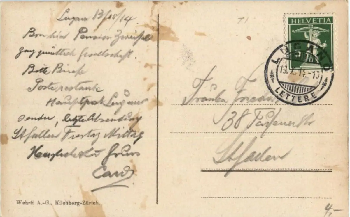 Danke. Alles Bestens. Können Sie mir allenfalls mitteilen, aus welchem Jahr die Postkarte stammt? Besten Dank.