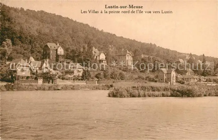Lustin-sur-Meuse Les Villas a la pointe nord de l’ile vue vers Lustin Lustin-sur-Meuse postalisch gelaufen 1927 Erhaltung siehe scans [WerneD78] WernPID7