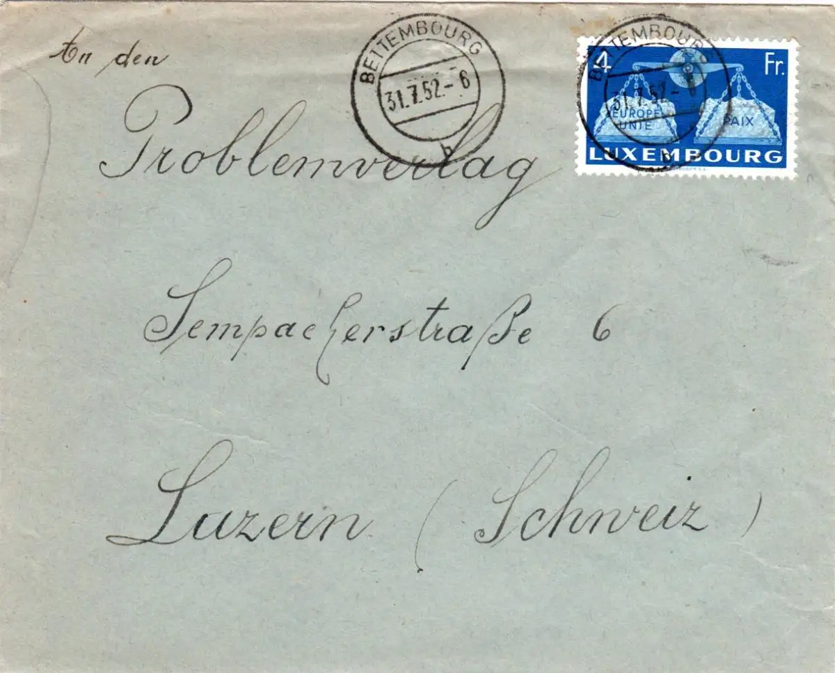 Luxemburg Nr.483, EF 4 Fr. auf Brief in die Schweiz. (Mi. gest. 50 €!)