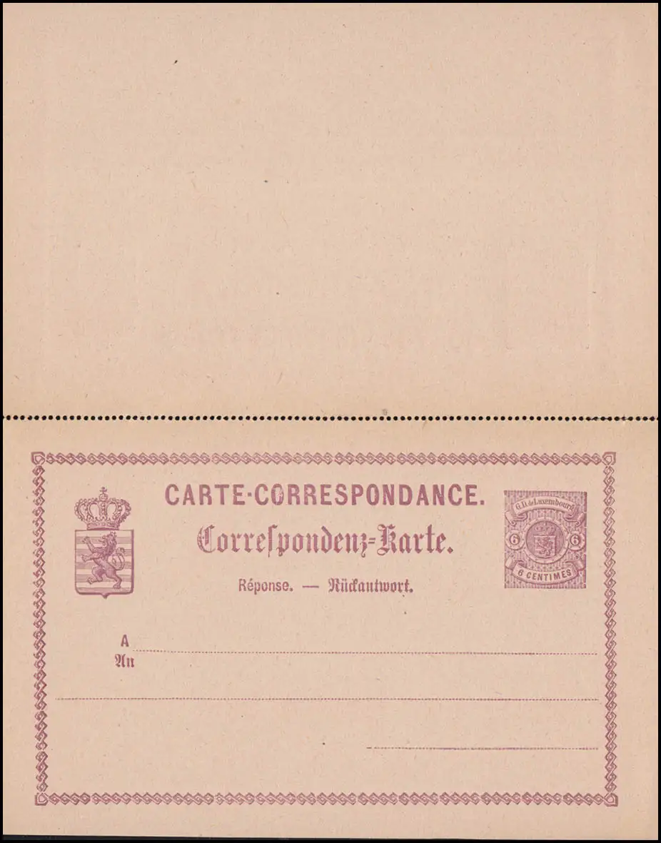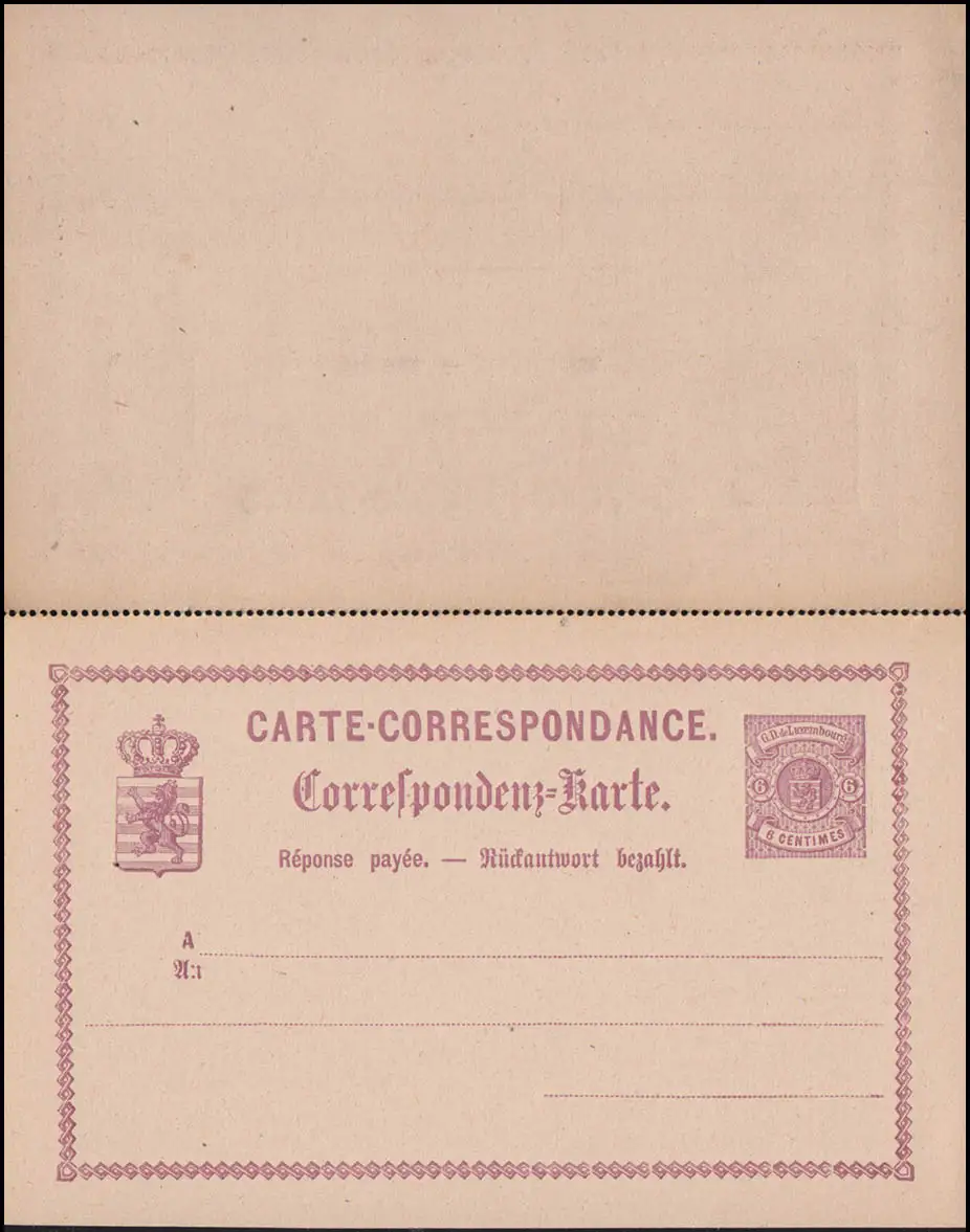 Luxemburg Postkarte P 11 Doppelkarte 6/6 C., ungebraucht **, angetrennt