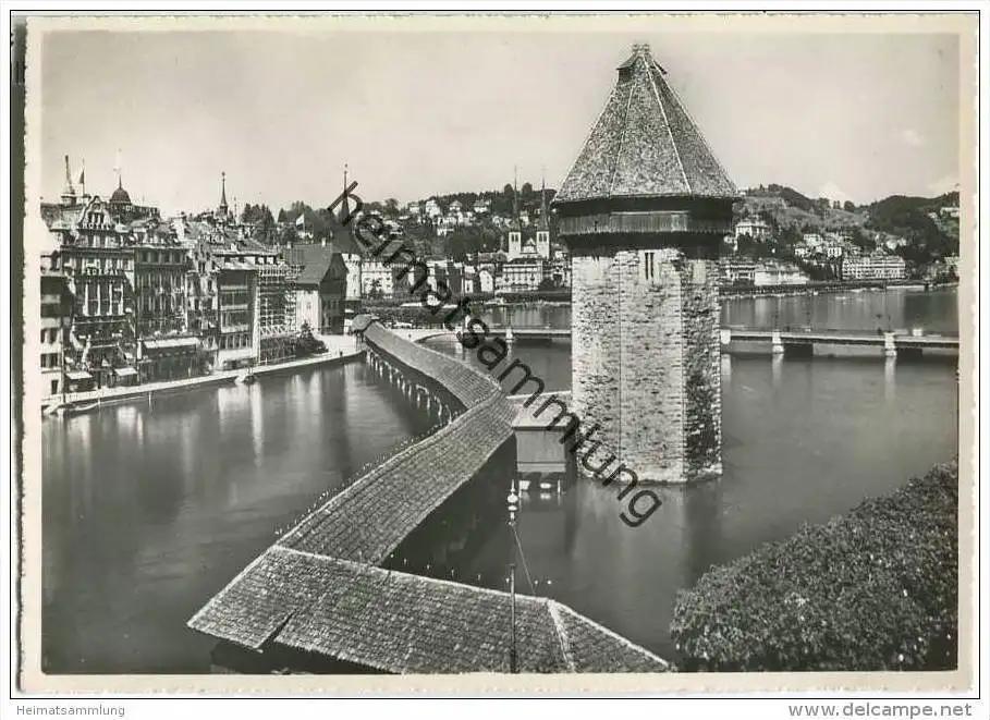 Luzern - Kapellbrücke mit Wasserturm - Foto-AK - rückseitig Klebepunkte (E35952) *