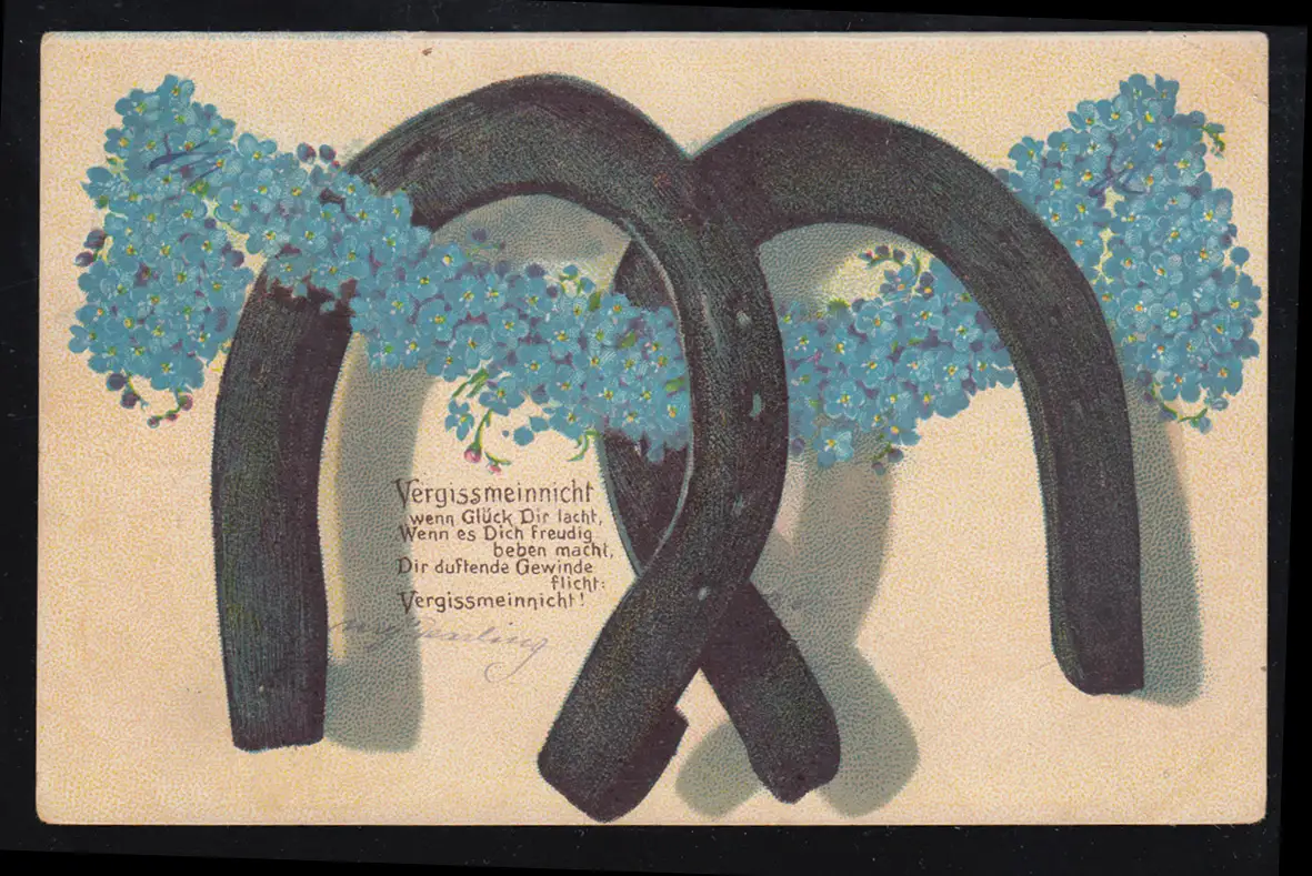Lyrik-AK Gedicht vom Vergissmeinnicht, mit Hufeisen, BERLIN SO 16 o 12.8.1911