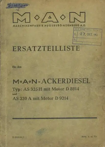 MAN Schlepper AS 325 H / AS 330 A Ersatzteilliste 9.1951