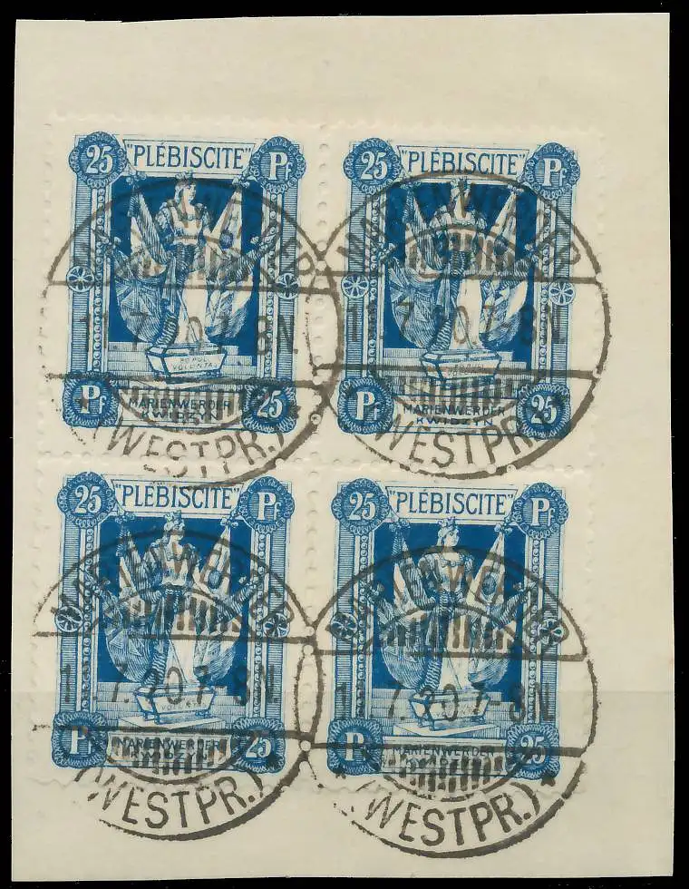25 Pfg Wert aus der 2. Freimarkenausgabe Marienwerder, 4er Block