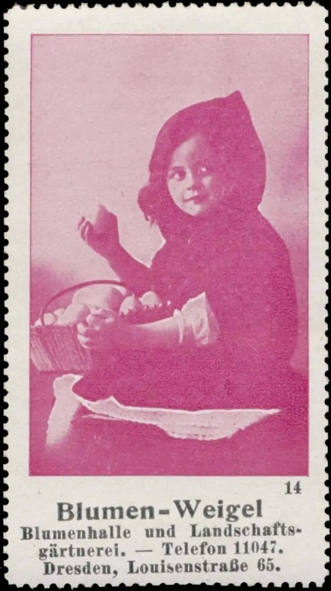 Blumenhalle und Landschaftsgärtnerei, Louisenstraße 65, Größe/Zustand: 7x4 , guter Zustand, Original alte Reklamemarke die seinerzeit für die Werbung benutzt wurde
