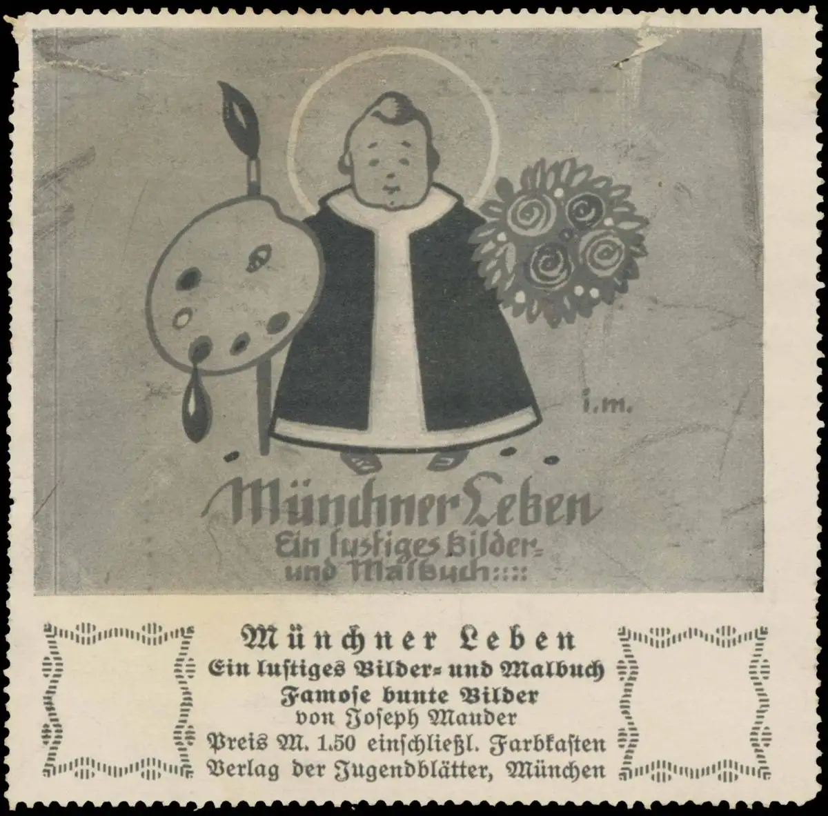 ein lustiges Bilder- und Malbuch von Joseph Mauder, Münchner Kindl, Größe/Zustand: 8x8 , beschädigt, Original alte Reklamemarke die seinerzeit für die Werbung benutzt wurde