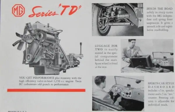 MG TD Midget Modellprogramm 1950 "Safety fast" Automobilprospekt (4177)