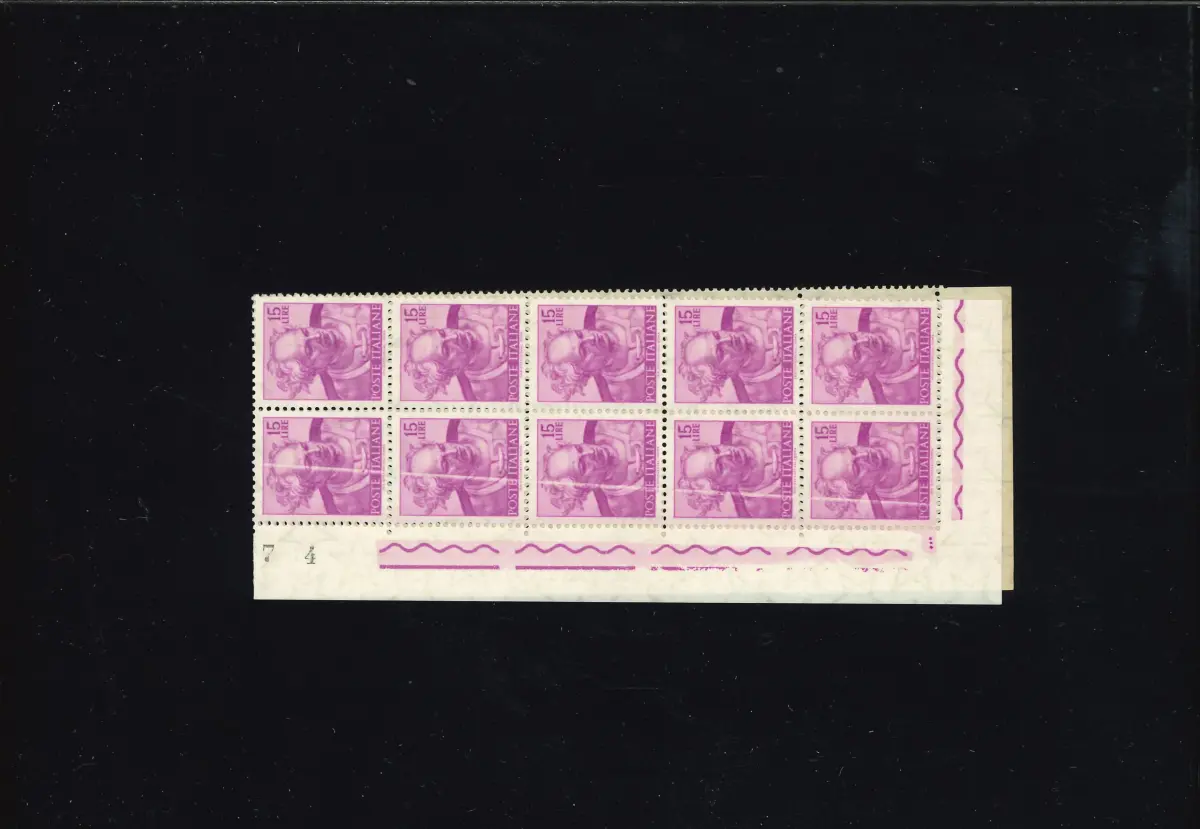 MNH - Vollgummi - MICHELANGIOLESCA 15 L. BLOCK VON 20 VERTIKALEN WEISSEN ZEILEN AUF DEM LINKEN STREIFEN Cod. ITAV_1589