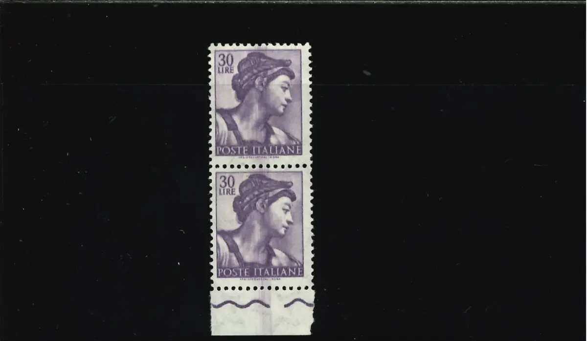 MNH - Vollgummi - MICHELANGIOLESCA 30 L. VERTIKALES PAAR GROSSE DIFFUSE FARBSTREIFEN Cod. ITAV_0407