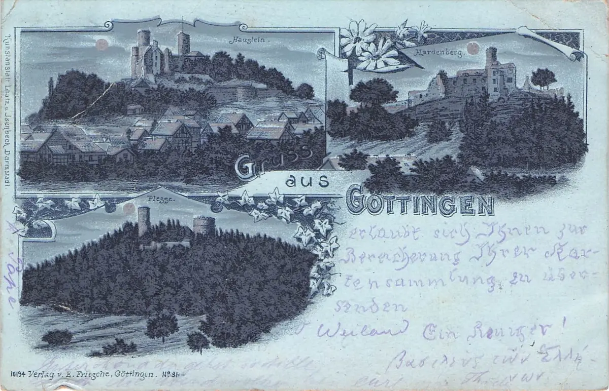 MONDSCHEINLITHO GRUSS AUS GÖTTINGEN HAUS + HARDENBERG 3 BILD UM 1900 -797536