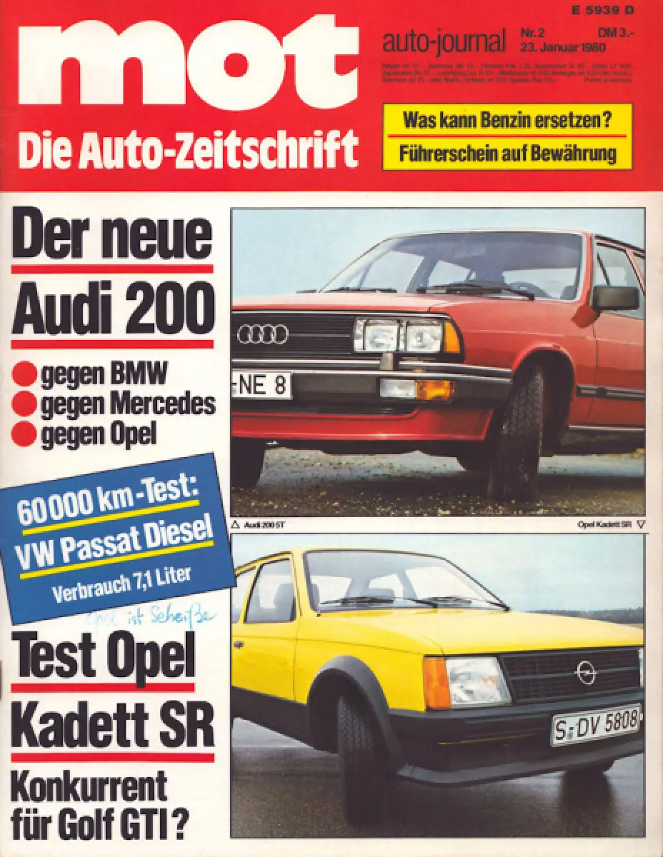 Opel Kadett SR VW Passat Variant GLD 60000 km Der neue Audi 200 Leichte Gebrauchsspuren