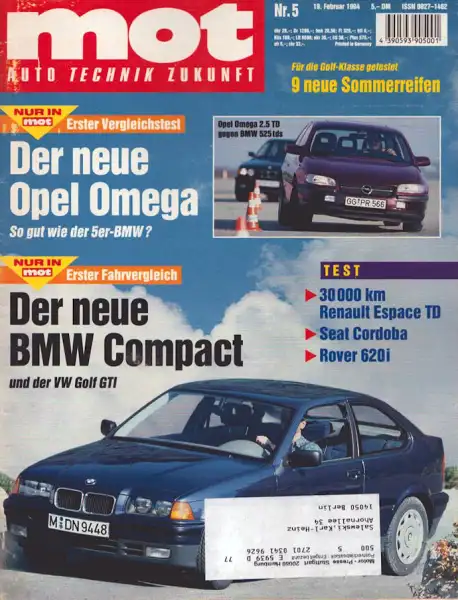 Opel Omega 2.5 TD / BMW 525 tds Chrysler Neon BMW 316i Compact / VW Golf GTI Renault Espace RN Turbo D Mercedes-Benz E 280 T Toyota Celica Seat Cordoba CLX 1.i Rover 620i Leichte Gebrauchsspuren