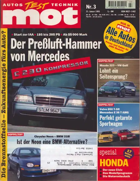 Mercedes-Benz C 230 Kompressor Mazda 323 F 1.5 / VW Golf1.8 GL Mercedes-Benz E 36 T AMG / Volvo 850 T-5 R BMW 318i / Chrysler Neon LE 2.0 Alfa 145 1.4 L / Fiat Cinquecento / Renault Twingo Easy Alles über den neuen Honda Civic Leichte Gebrauchsspuren