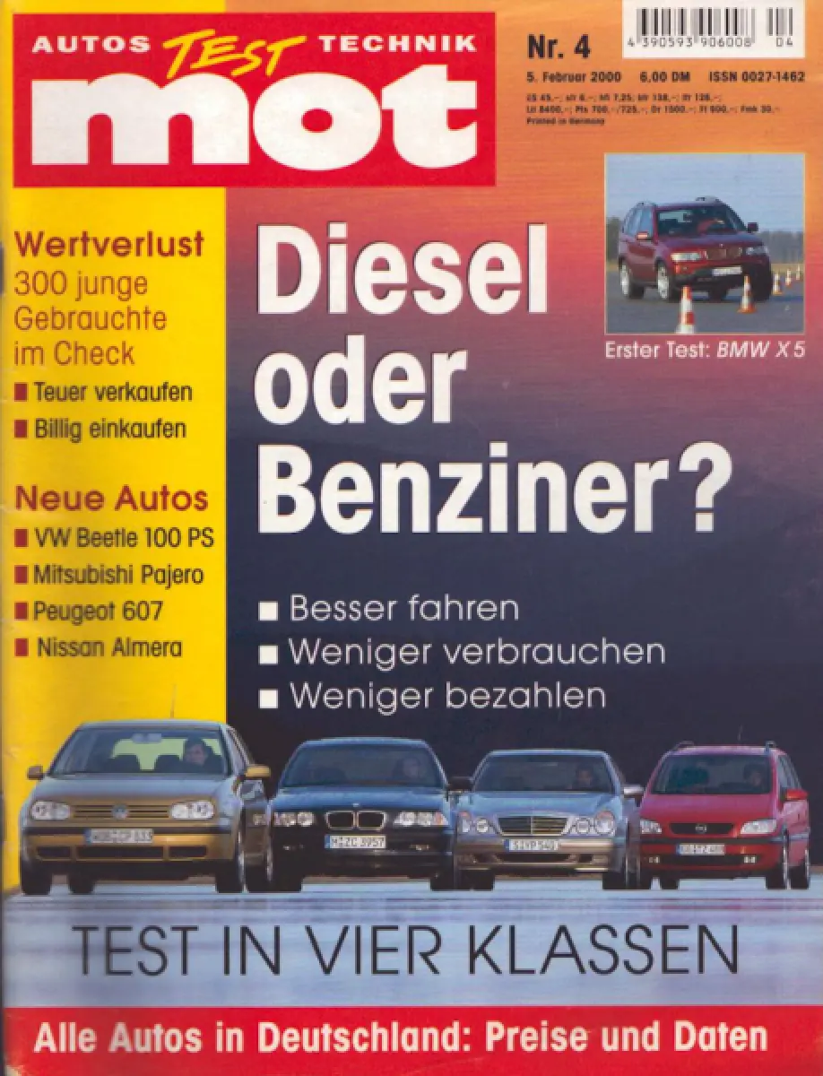 Mitsubishi Pajero VW Golf 1.9 TDI / 1.6 BMW 320d / 318i Opel Zafira 2.0 Di 16V / 1.6 16V Mercedes-Benz E 270 CDI Automatik / E 240 Automatik VW New Beetle 1.6 / 1.8 Turbo Peugeot 607 Mazda 626 2.0 Exclusive Fiat Multipla Hybrid BMW X 5 .4i + Sportpaket Nissan Almera Toyota Corolla VW Golf 1.9 TDI-PD Wendland Leichte Gebrauchsspuren