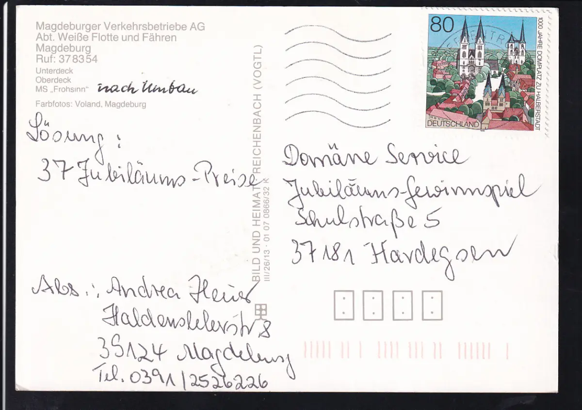 zwei sehr schöne Bahnpostbelege, einmal HUSUM-GARDING von 1916 - ohne Zugnummer aufgrund der Furcht vor feindlicher Spionage - und ERFURT-EISENACH von 1965. Vielen Dank, bin mit der Lieferung sehr zufrieden.