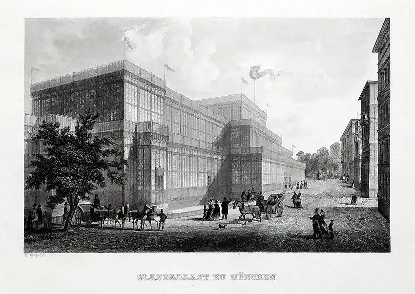 MÜNCHEN - Der Glaspalast - Stahlstich um 1850