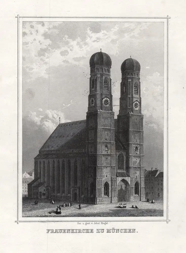 MÜNCHEN - Die Frauenkirche - Stahlstich um 1850