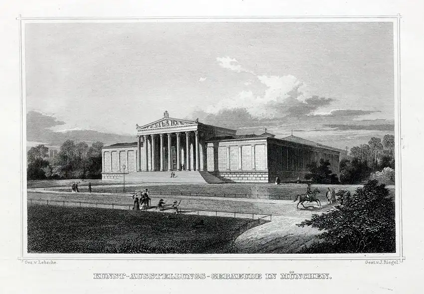 MÜNCHEN - Glyptothek - Antike am Königsplatz - Stahlstich um 1850