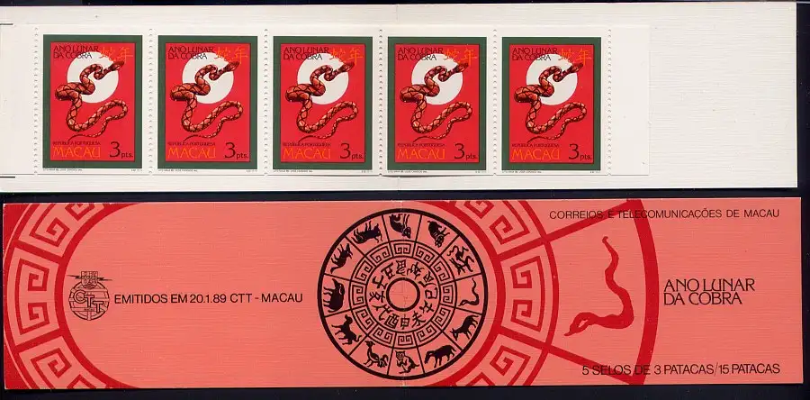 Macau Macao 1989 Jahr der Schlange Chinesisches Neujahr 611C Markenheft MNH
