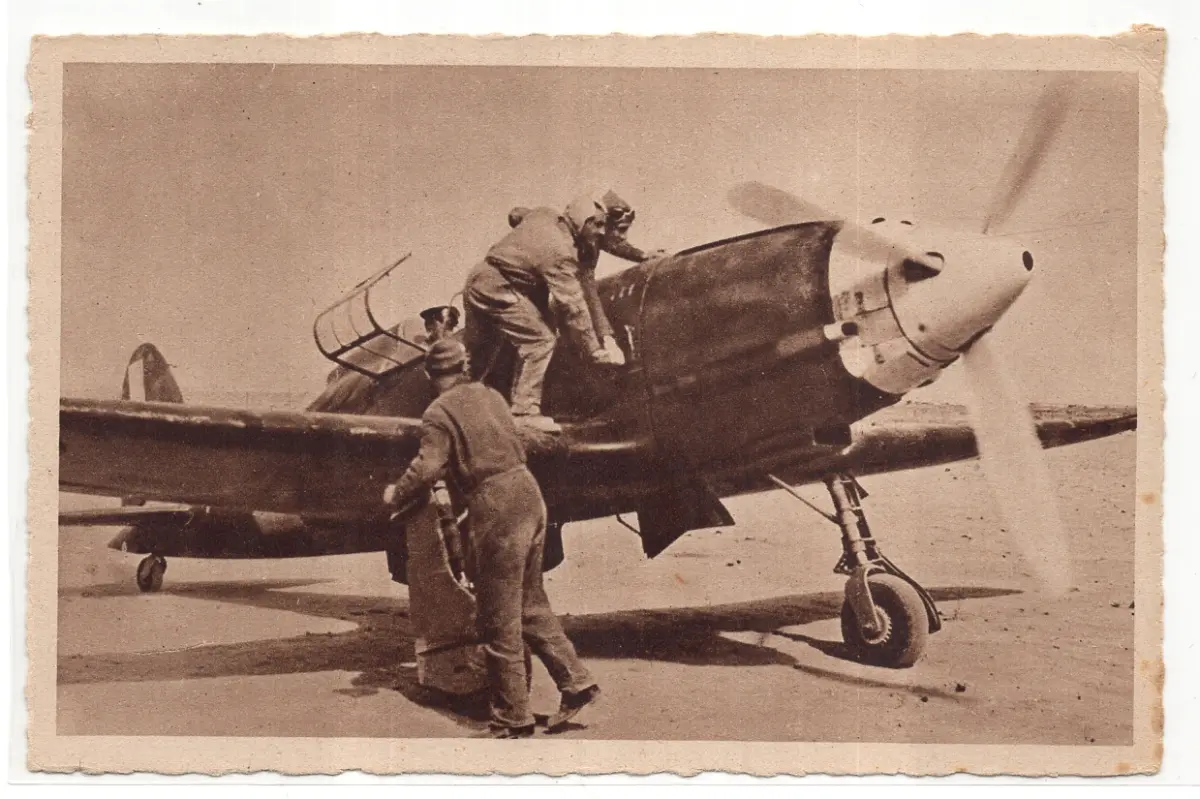 Postkarte - Monochrome Postkarte Die Motoren des Macchi 202 Ausgabe Italienische Relievographie Foligno werden getestet - Nicht gereist, perfekt Cod. 3516 / WEB