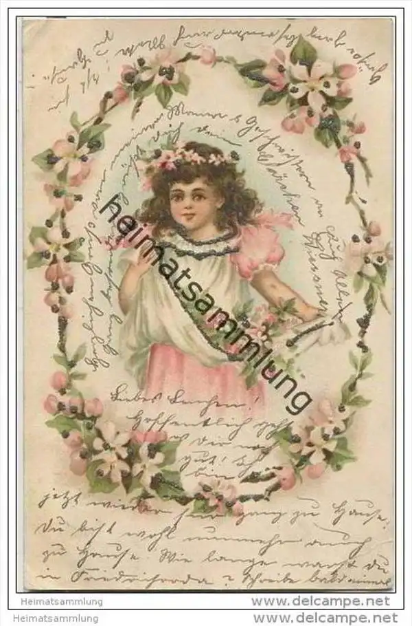 Mädchen mit Blumenkranz im Haar - Glimmer - leichte Gebrauchsspuren (G24733) gel. 1901
