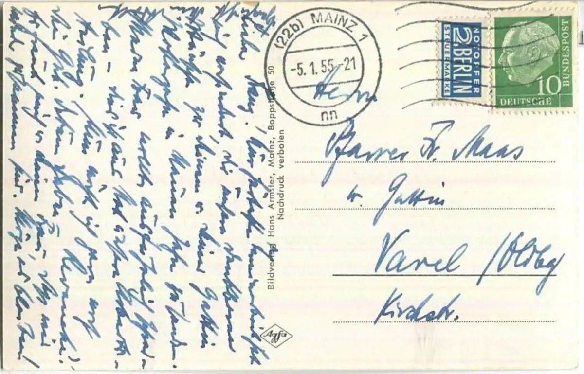 Mainz - Johannes Gutenberg Universität - Verlag Hans Armster Mainz - leichte Stempelspur (G2969) gel. 1955