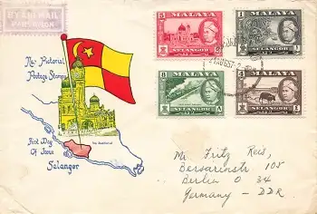 Malaya Selangor First Day of Iooue FDC o 21.8.1957