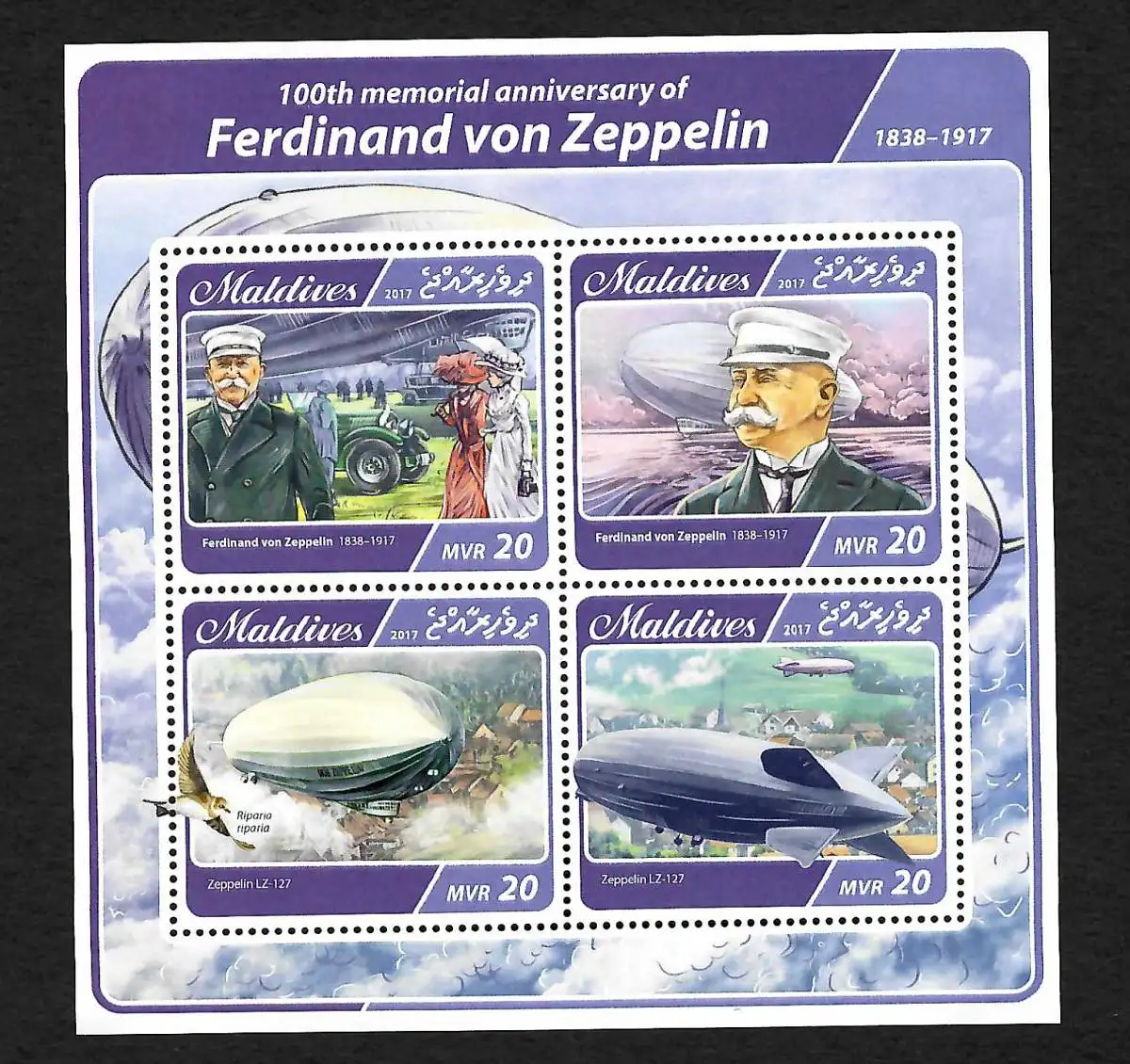 Malediven 2017 Zeppelin LZ-127, 100th memorial anniversary of Ferdinand Zeppelin