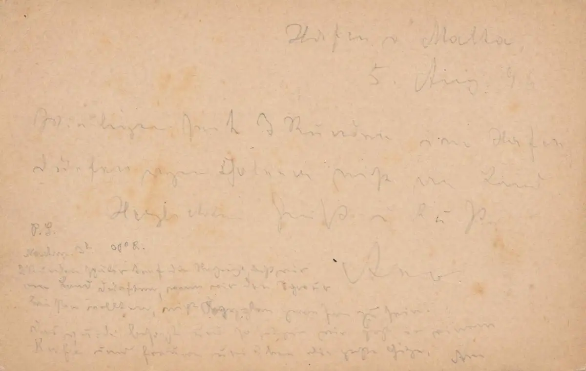 Brief/Karte oder Marken nur im Scan leicht beschnitten.