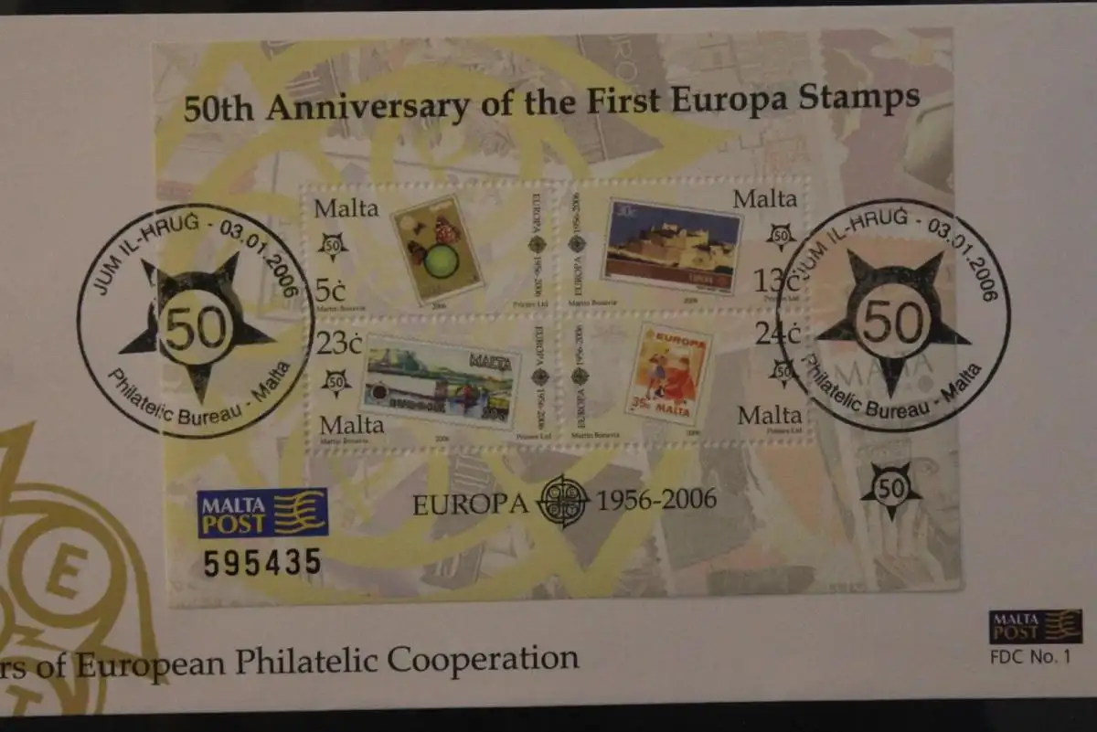 Malta 2006; 50 Jahre Europa-Marken CEPT, Block auf FDC