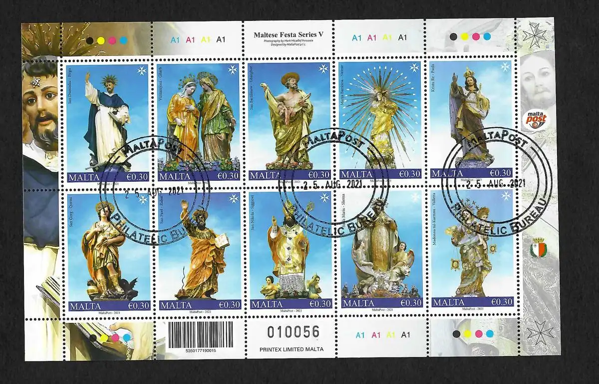 Malta 2021: Maltese Festa Series V, Feste, Kleinbogen gestempelt