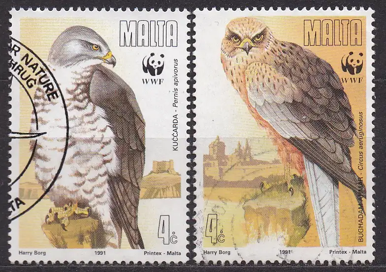 Malta, Mi-Nr. 864 + 865 gest., Greifvögel (WWF)