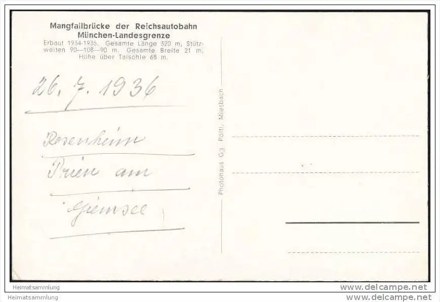 Mangfallbrücke der Reichsautobahn München-Landesgrenze - Verlag Photohaus Gg. Pöltl Miesbach - Rückseite beschrieben 1936 - leichte Gebrauchsspuren (G22067)