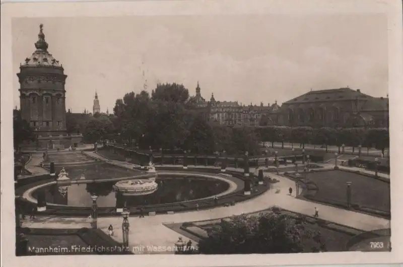 Mannheim - Friedrichsplatz mit Wasserturm - ca. 1950