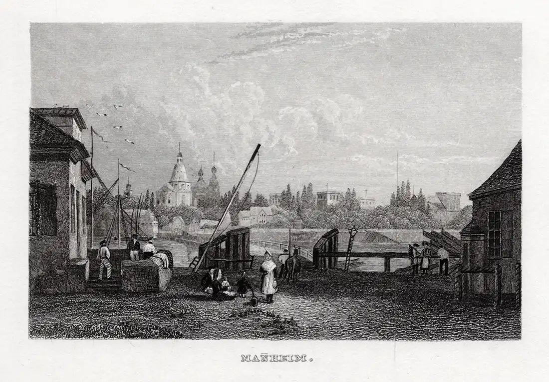 Mannheim, Gesamtansicht. Echter Stahlstich, Geib um 1840