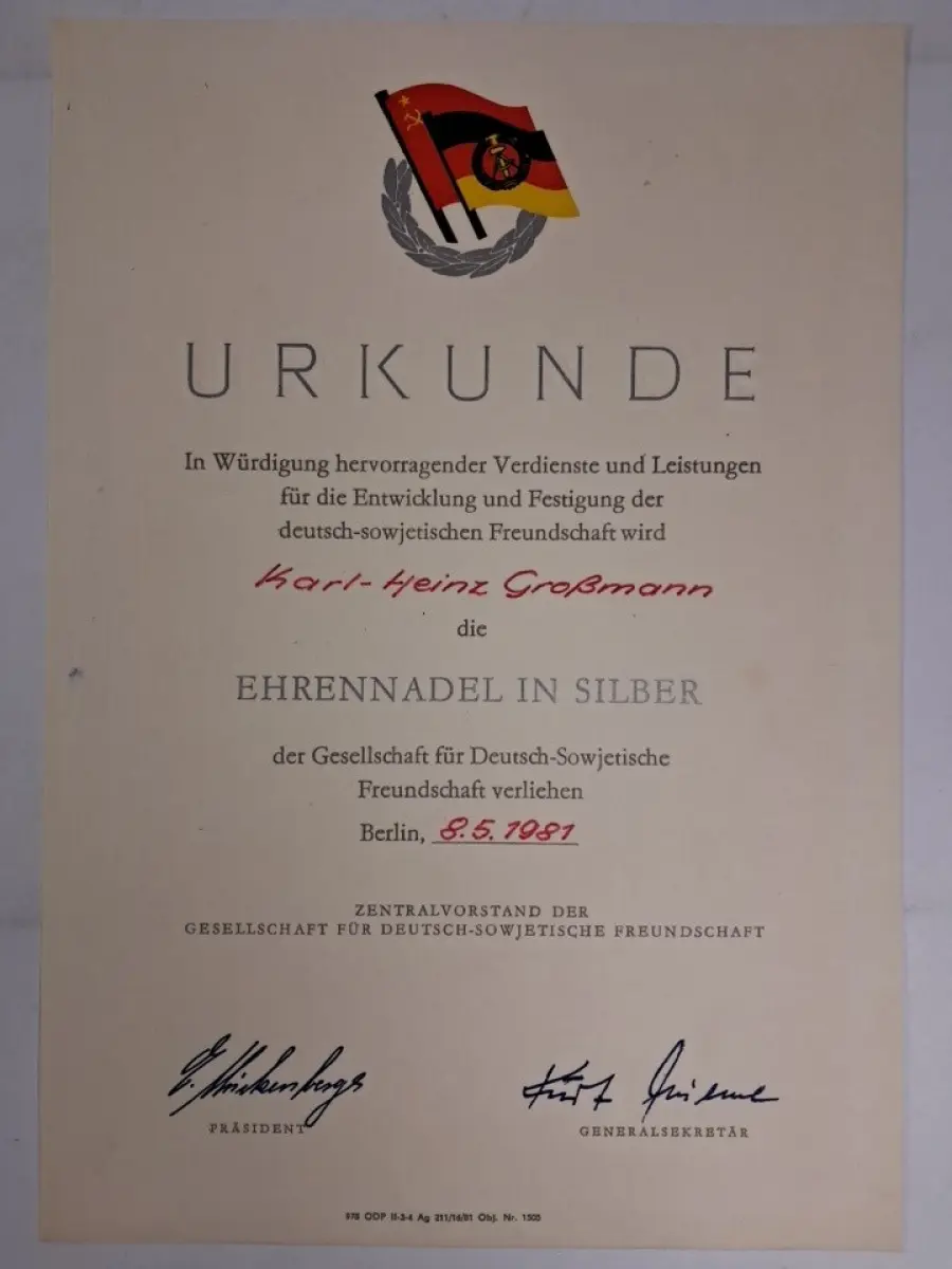 Schlagworte: Urkunde, DDR