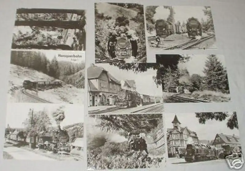 Mappe "Harzquerbahn" Folge 2, Format 14,8 x 10,5 cm, mit Text auf der Innenseite mit 6 Postkarten: Haltepunkt Sorge, Bahnhof Ilfeld, Zwischen Benneckenstein und Tiefenbachmühle, Bahnhof Drei Annen-Hohne, Fahrt nach Elend, Drehscheibe Wernigerode gute Erhaltung (geringe Altersspuren), siehe Bild