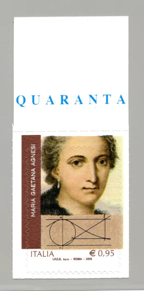 MNH - Vollgummi - Maria Gaetana Agnesi - exemplarischer Bogenrand mit stark nach unten verschobener Stanzung - Ungewöhnliche Sorte Cod. 4139/WEB