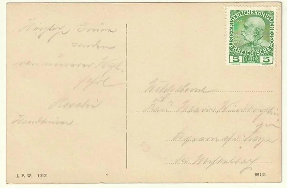 J. P. W. 1912. Farb. Karte. 9 x 14 cm. Guter Zustand.