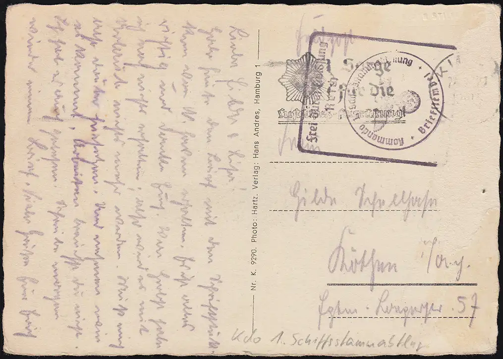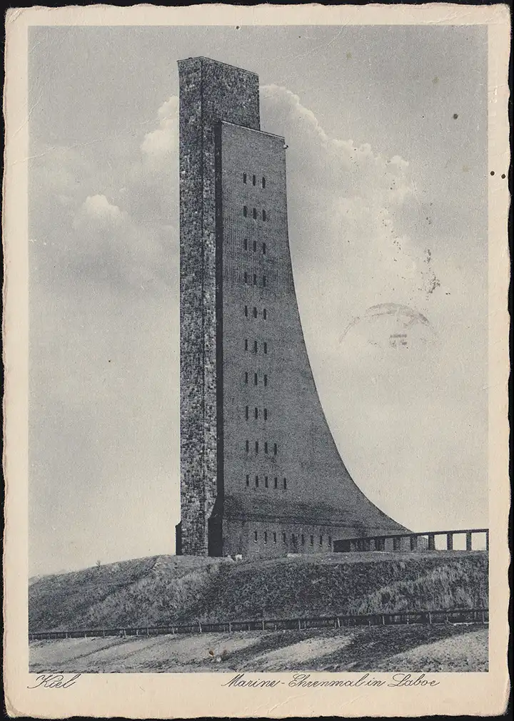Marine-Feldpost BS 1. Schiffsstammabteilung auf AK KIEL Marine Ehrenmal in Laboe