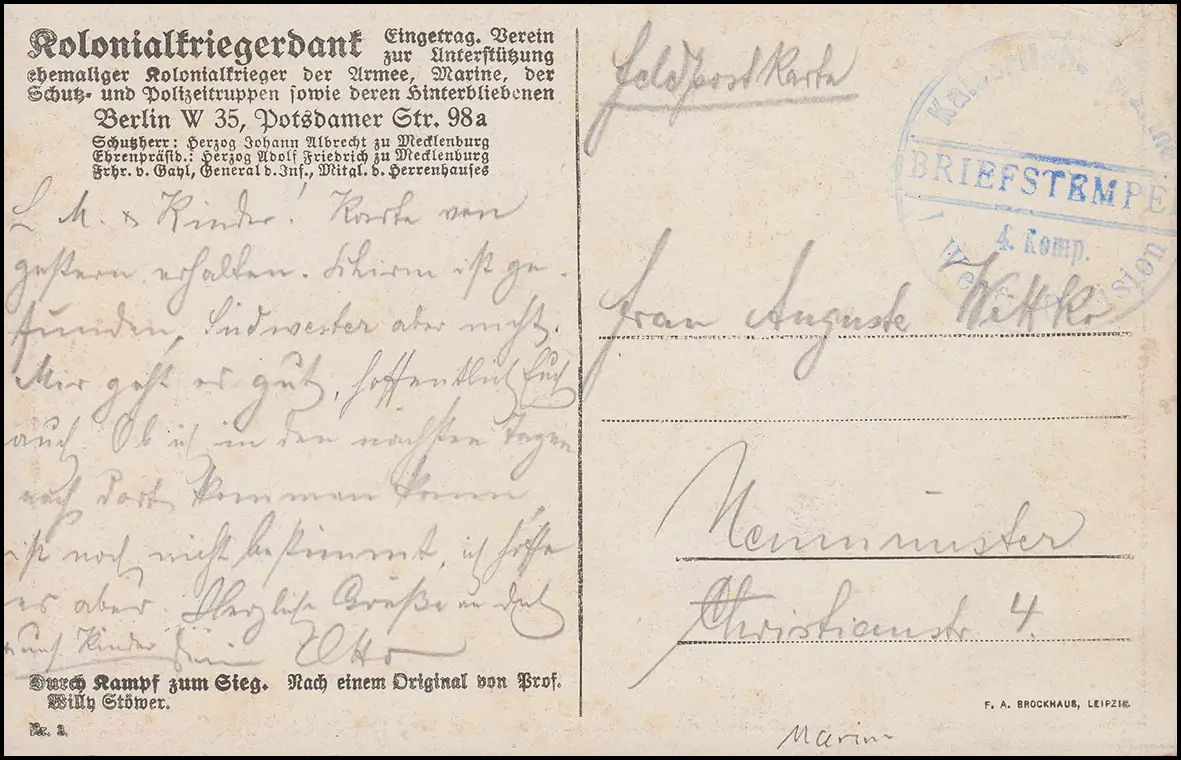 Marinefeldpost BS Kaiserliche Marine 4. Komp. I. Werft-Division, Propaganda-AK