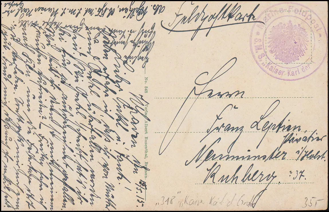 Marinefeldpost BS der SMS Kaiser Karl der Große 15.5.1915, AK SMS Ostfriesland
