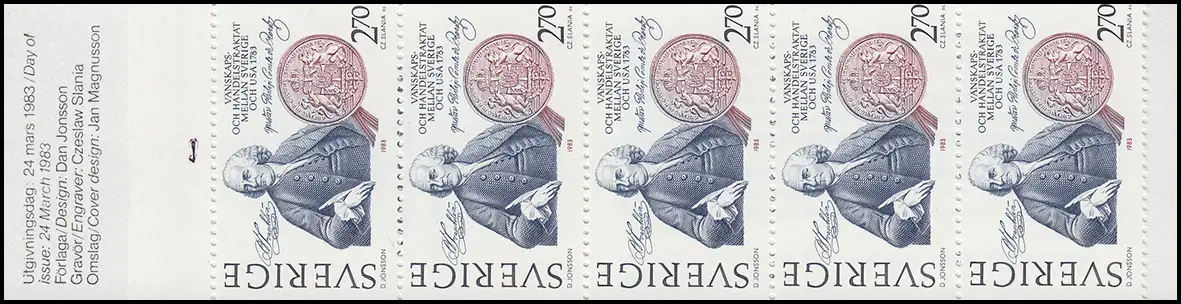 200 Jahre Schwedisch-Amerikanischer Freundschafts- und Handelsvertragmit: Benjamin Franklin und großes Siegel Schwedens, mit Formnummer 1 negativ