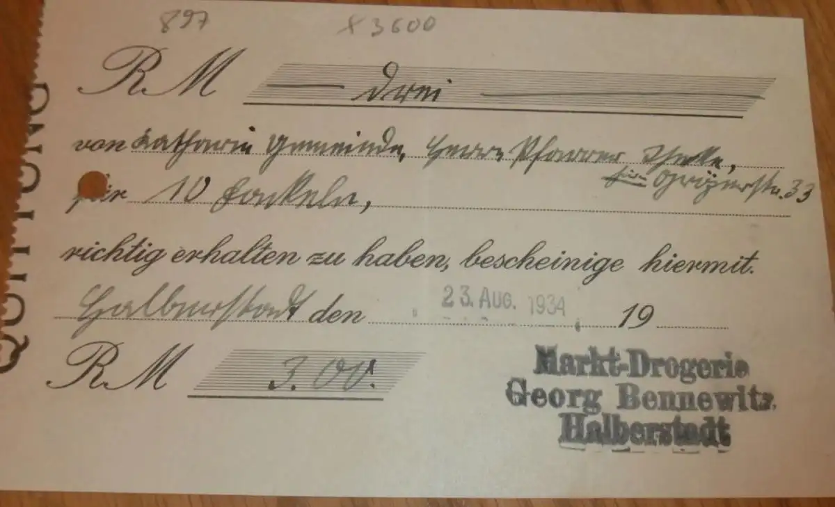 Markt-Drogerie - Georg Bennewitz in Halberstadt , 1934 , alte Rechnung , Reklame / Werbung !!AZ-WR/1M