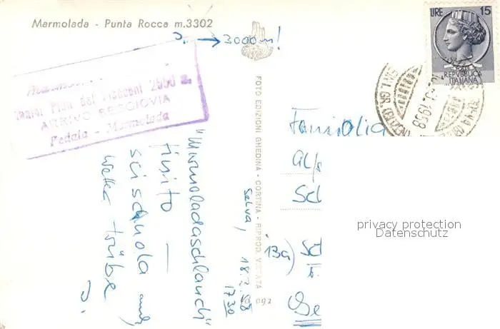 Marmolada Punta Rocca Marmolada postalisch gelaufen 1958 Erhaltung siehe scans [PaolaD17] PaolPID1