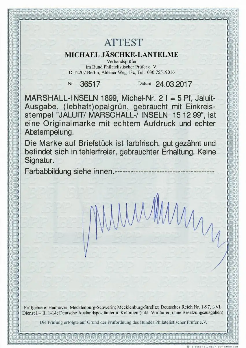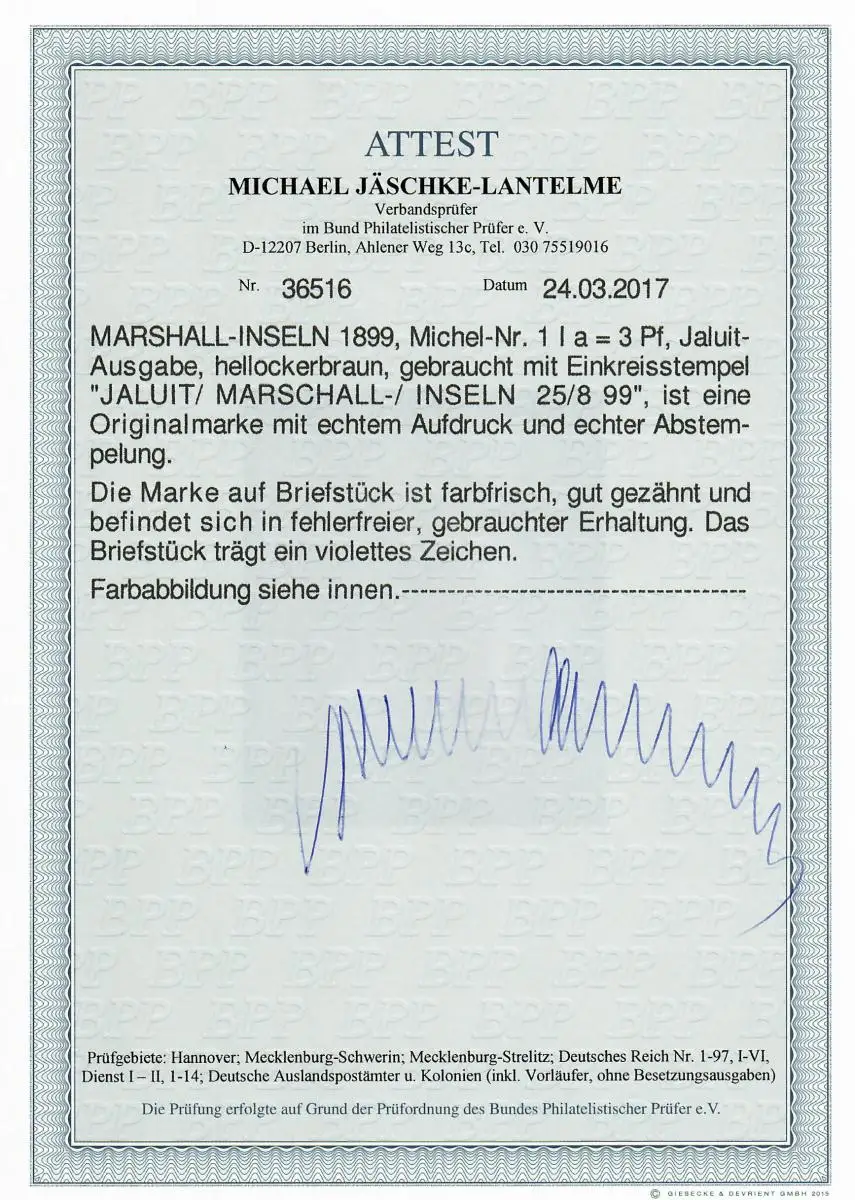 Marshall-Inseln 1899, MiNr. 1-4 (1Ia, 2I mit BPP Attest), gestempelt Jaluit